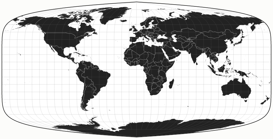 But more recently I've realized that decorative appearance isn't the most important purpose of a map, and that conformality at (lat 45, lon 0) balances the shapes better, worldwide.